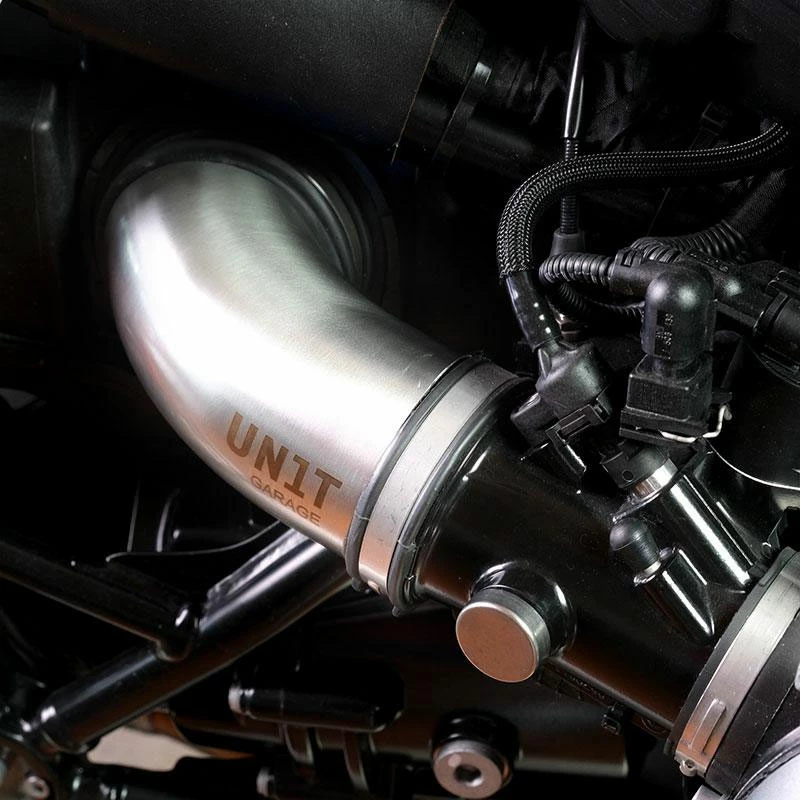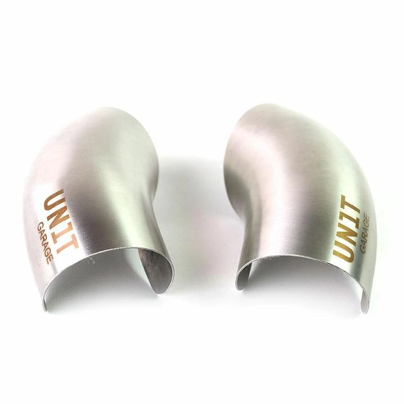 Coppia carter collettori aspirazione inox satinato, destro e sinistro con logo Unit garage.