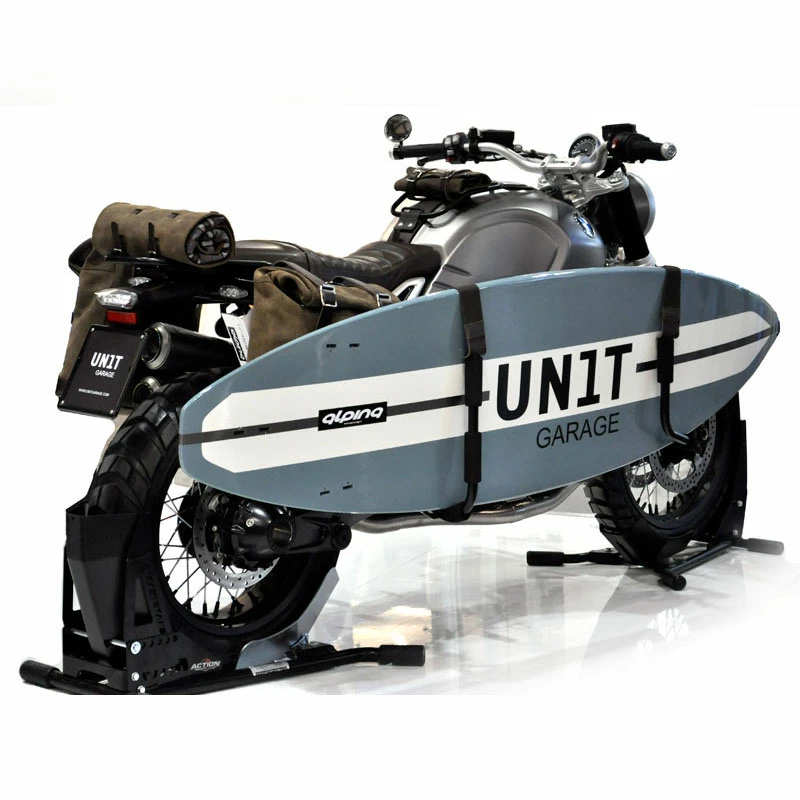 Quindi abbiamo semplicemente unito le nostre passioni, ne sentivamo l’esigenza…unire la moto ed il surf,non per fare un foto-shooting, ma per arrivare sullo spot con il necessario per andare in acqua.