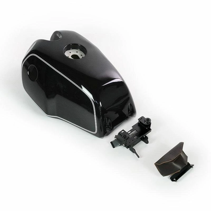 Il serbatoio in Nylon viene fornito verniciato completo di adesivi sotto trasparente. (nella versione bianca vanno acquistati a parte) Il filtro originale a carboni attivi ( canester) rimane quello originale. Tutti i supporti per il fissaggio del serbatoio sono forniti nel kit. La capienza è di litri 18,5