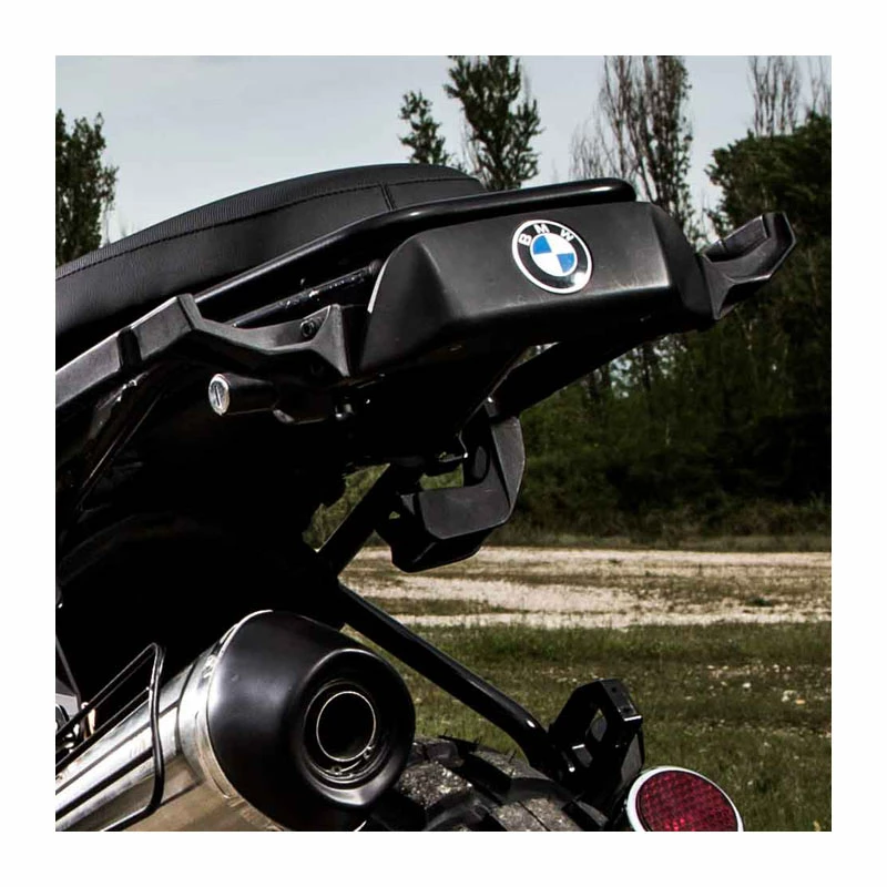 Questo supporto in alluminio consente di montare la cover in plastica con il logo BMW sulla parte posteriore del telaio rifinendola perfettamente. Vi permetterà di eliminare il parafango posteriore e di caratterizzare la coda della moto molto facilmente. Vi consigliamo di montarlo insieme al Portatarga basso Cod. 1515. Compatibile con i modelli: R850GS-R1100GS-R1150GS (NO R1150ADV)