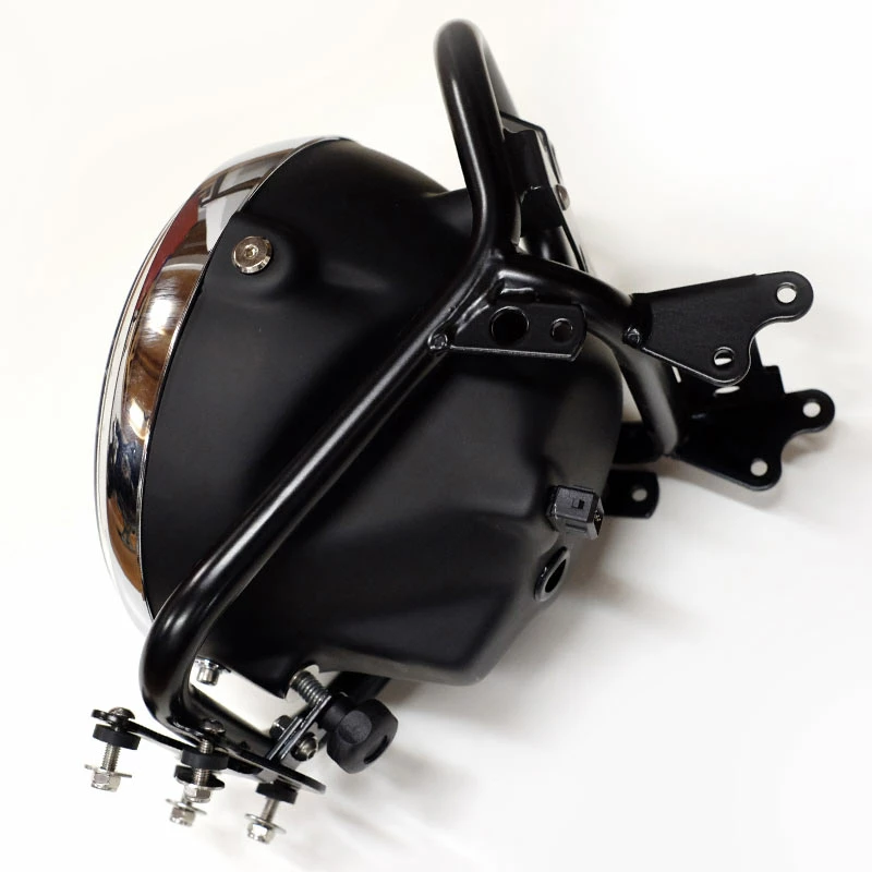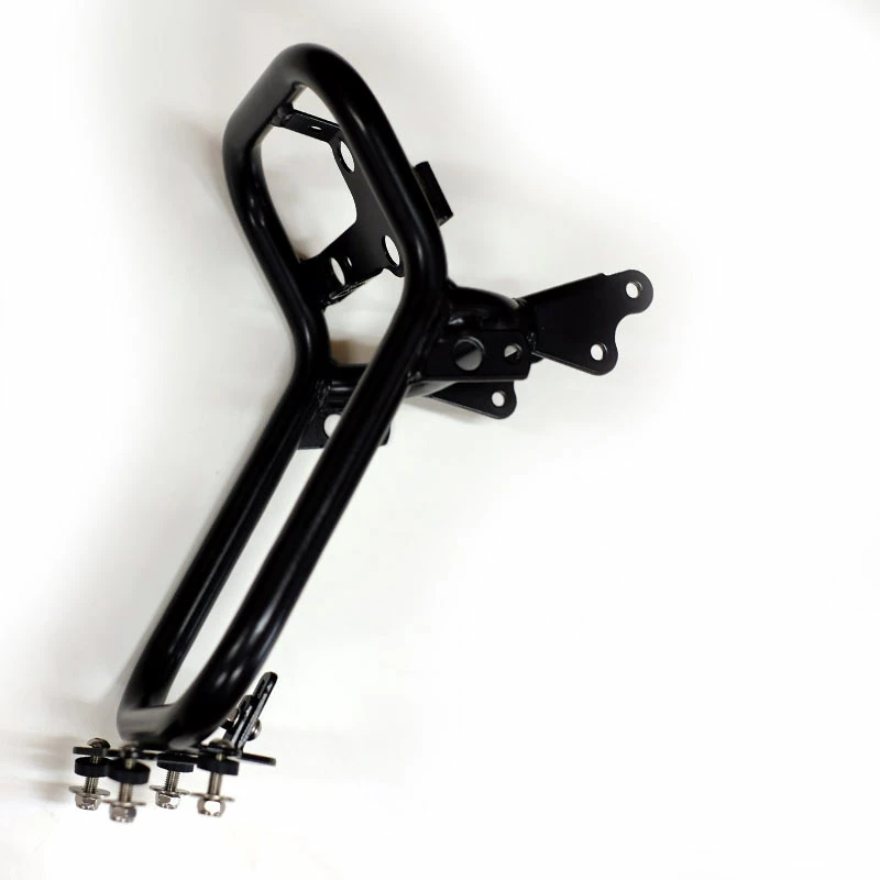 Realizzato in acciaio trattato con vernici a polveri ad alta resistenza. Si monta facilmente sui Riser Cod. 1504 e permette l’alloggiamento del faro anteriore, del parafango alto, delle frecce originali e dei cupolini optional. È predisposto per il montaggio del cruscotto con tachigrafo e contagiri originali