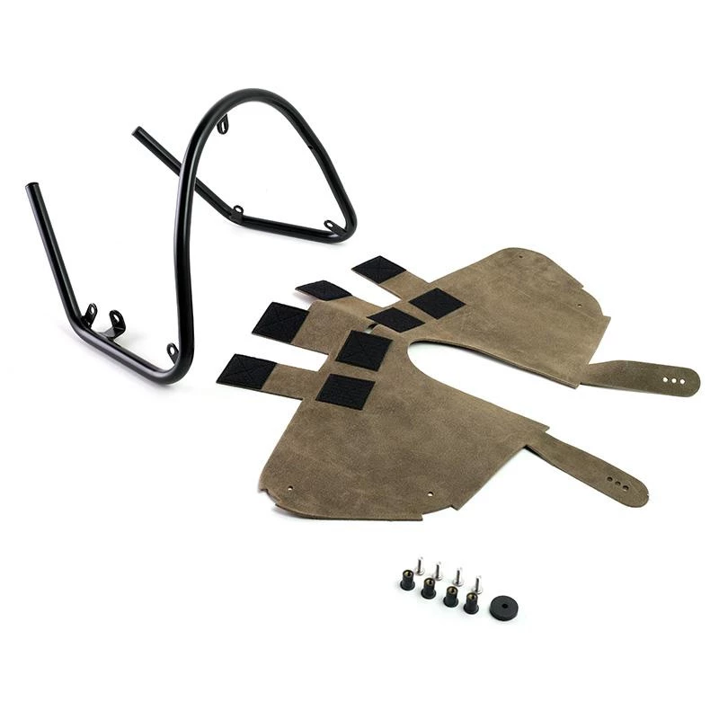 Montando una sella più classica rimane una zona vuota fra sella e serbatoio,abbiamo risolto questo problema con: tubo protezione per i fianchi del serbatoio realizzato in acciaio con finitura nera a polveri epossidiche ad alto spessore e finitura in crosta di cuoio. Oltre a riparare la zona del serbatoio vicino alle ginocchia del pilota, dona un look più muscoloso alla tua R integrandosi perfettamente con le linee della tua moto.