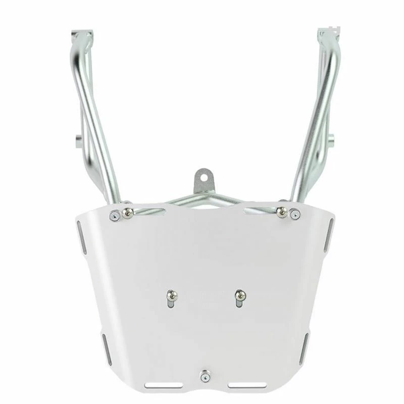 Portapacchi realizzato in tubo di acciao con finitura nero opaco a polveri epossidiche. Completa la parte posteriore ed è provvisto di maniglie per il passeggero, si fissa molto semplicemente sulla moto originale con le viti in dotazione. Robusto e pratico, è provvisto sul piano di appoggio di 4 boccole per fissaggio della piastra AL5 ( acquistabile separatamente o già inclusa nel bauletto Atlas codice: AL3 ).