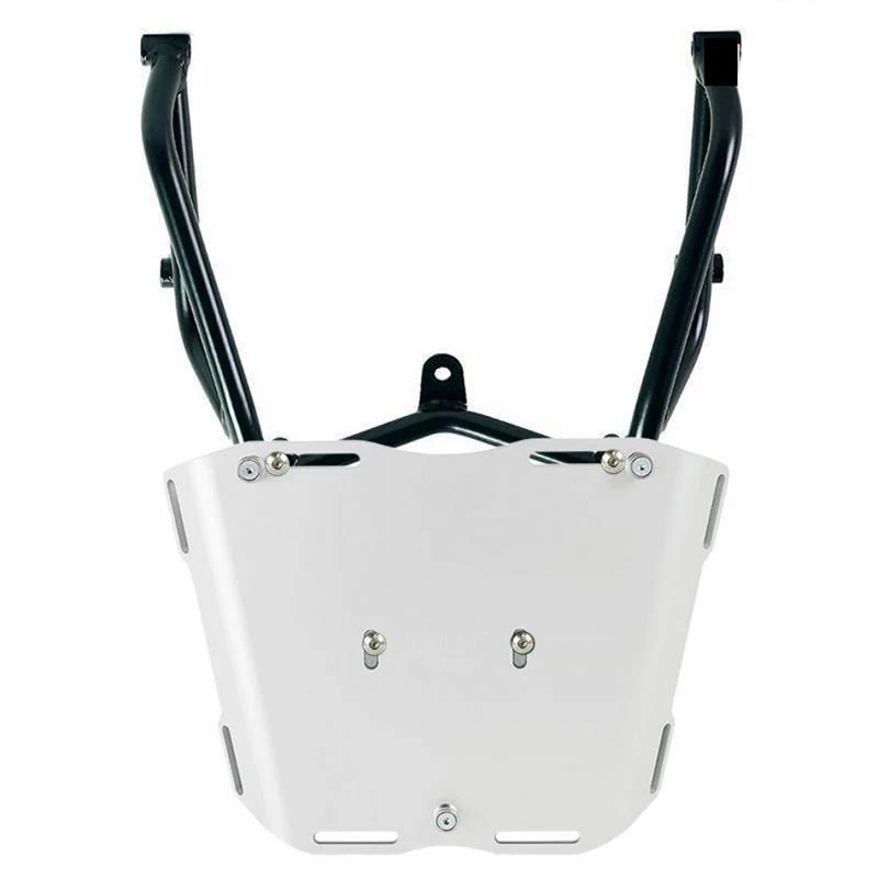 Portapacchi realizzato in tubo di acciao con finitura nero opaco a polveri epossidiche. Completa la parte posteriore ed è provvisto di maniglie per il passeggero, si fissa molto semplicemente sulla moto originale con le viti in dotazione. Robusto e pratico, è provvisto sul piano di appoggio di 4 boccole per fissaggio della piastra AL5 ( acquistabile separatamente o già inclusa nel bauletto Atlas codice: AL3 ).
