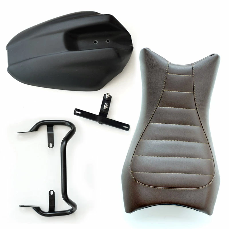Sella: Sella monoposto di nostra realizzazione con cuciture realizzate a mano con filo di cotone. Molto più comoda e minimal, si monta senza nessuna modifica alla moto in quanto è agganciata e fissata nella stessa posizione di quella originale. Permette il montaggio del nostro parafango posteriore cod 1614 e della relativa maniglia codice 1616 Il risultato è fantastico ma anche molto pulito ed elegante. Colore: Canvas beige idrorepellente Maniglia: Realizzata in acciaio con finitura nero opaco a polveri epossidiche Oltre ad essere molto utile per muovere la moto da ferma rifinisce in modo fantastico tutta la parte posteriore . Si monta con la nostra sella monoposto codice 1602 ed il parafango posteriore cod 1614 Parafango: Parafango posteriore in ABS completo di staffa di fissaggio e antivibranti. Si sposa perfettamente con il retro della moto e con la nostra sella monoposto cod1602,e si può montare con il portatarga originale. Ma il top è sicuramente abbinato alla nostra piastra supporto faro posteriore cod 1604 Con finitura matt black si monta molto facilmente. NB:non compatibile con la sella originale