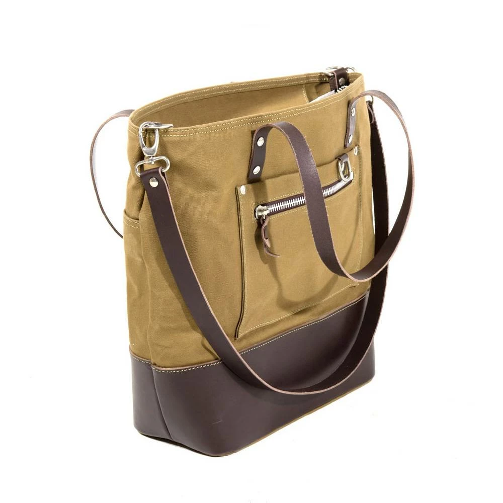 Borsa realizzata a mano in Italia in robusto Cotone waterproof di primissima qualità; trattata con cera che la rende resistente all’acqua.