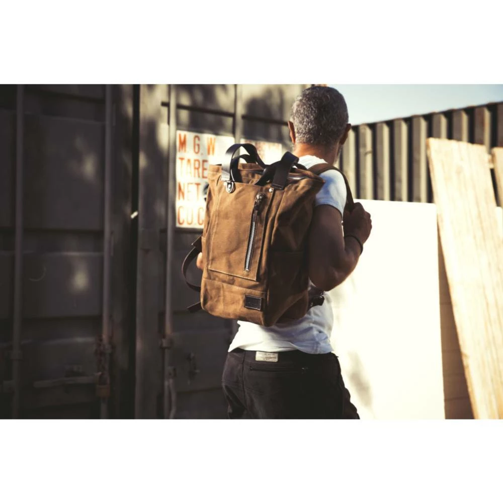 Zaino realizzato a mano in Italia in robusto Cotone waterproof di primissima qualità; trattato con cera che lo rende resistente all’acqua.