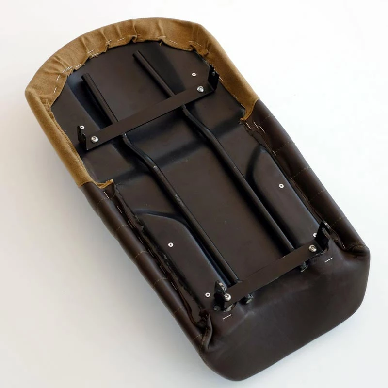 Sella realizzata in vera pelle di prima qualità con inserti in canvas idroreppellente e cuciture realizzate a mano in filo di cotone. Realizzata con fondo in ABS,molto comoda,viene fornita completa di telaio di fissaggio sui modelli K75 o K100. Può essere rimossa velocemente per accedere al vano sottosella. Lunghezza massima di cm 55.
