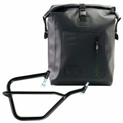 Si aggancia velocemente ai nostri telai porta borsa con il sistema a sgancio rapido Cod.U000 già incluso e montato sul retro della borsa, che è provvisto di serratura per il bloccaggio sul telaio stesso. Può alloggiare all’interno un computer portatile da 15″, è provvista di una capiente tasca waterproof.