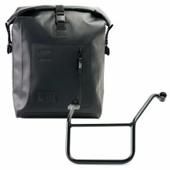 Si aggancia velocemente ai nostri telai porta borsa con il sistema a sgancio rapido Cod.U000 già incluso e montato sul retro della borsa, che è provvisto di serratura per il bloccaggio sul telaio stesso. Può alloggiare all’interno un computer portatile da 15″, è provvista di una capiente tasca waterproof.