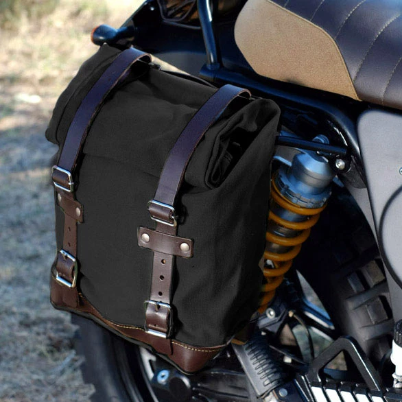 Borsa laterale con telaio Borsa realizzata a mano in Italia in robusto Cotone waterproof di primissima qualità . Curata nei minimi dettagli con finiture in cuoio da 3 mm,semplice e pura come i materiali con cui è stata costruita. Si aggancia velocemente al nostro telaio portaborsa con il sistema a sgancio rapido applicato sul retro della borsa che è provvisto di serratura per il bloccaggio sul telaio stesso. Può alloggiare all’interno un computer portatile da 15,è provvista di una capiente tasca con cerniera per telefono e documenti. Misure: altezza cm 32 (allungabile in altezza fino a cm 45 ) larghezza cm 24 profondità cm 13 Colori : Canvas nero waterproof con finiture cuoio nero Canvas nero waterproof con finiture cuoio marrone Canvas beige waterproof con finiture cuoio marrone Canvas verde waterproof con finiture cuoio marrone Telaio realizzato in acciaio trattato con finitura nero opaco a polveri episodiche. Disegnato sulla Serie K (1983-1996) si integra perfettamente con il resto della moto. Pronto per ospitare il nostro sistema di aggancio rapido,bello e minimal anche quando la borsa non è montata. Viene fornito completo di viti e si monta facilmente. NB: Può essere usata in maniera confortevole anche con il passeggero a bordo