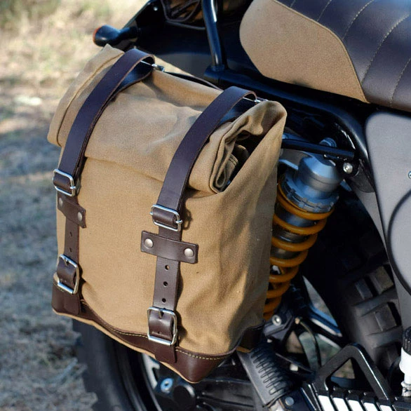 Borsa laterale con telaio Borsa realizzata a mano in Italia in robusto Cotone waterproof di primissima qualità . Curata nei minimi dettagli con finiture in cuoio da 3 mm,semplice e pura come i materiali con cui è stata costruita. Si aggancia velocemente al nostro telaio portaborsa con il sistema a sgancio rapido applicato sul retro della borsa che è provvisto di serratura per il bloccaggio sul telaio stesso. Può alloggiare all’interno un computer portatile da 15,è provvista di una capiente tasca con cerniera per telefono e documenti. Misure: altezza cm 32 (allungabile in altezza fino a cm 45 ) larghezza cm 24 profondità cm 13 Colori : Canvas nero waterproof con finiture cuoio nero Canvas nero waterproof con finiture cuoio marrone Canvas beige waterproof con finiture cuoio marrone Canvas verde waterproof con finiture cuoio marrone Telaio realizzato in acciaio trattato con finitura nero opaco a polveri episodiche. Disegnato sulla Serie K (1983-1996) si integra perfettamente con il resto della moto. Pronto per ospitare il nostro sistema di aggancio rapido,bello e minimal anche quando la borsa non è montata. Viene fornito completo di viti e si monta facilmente. NB: Può essere usata in maniera confortevole anche con il passeggero a bordo